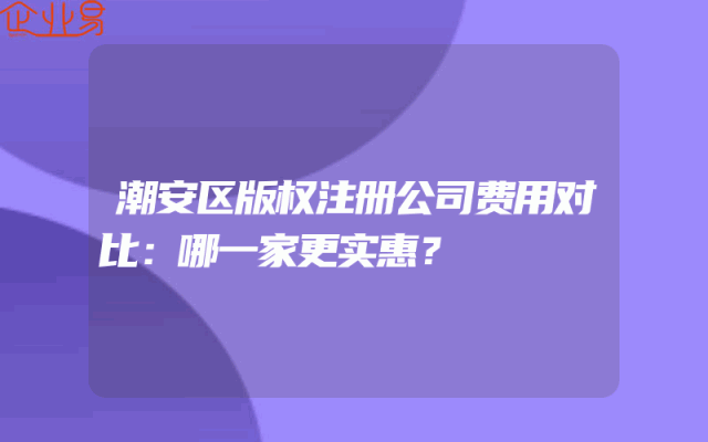 - 潮安区版权注册公司费用对比:哪一家更实惠?