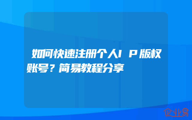- 如何快速注册个人IP版权账号?简易教程分享一、了解版权注册的重要性在当今数字化时代,个人知识产权的保护尤为重要。随着网络技术的快速发展,个人的创意、设计、文学作品等数字资产面临着一系列挑战和风险。为了确保个人创作内容的合法权益,注册个人IP