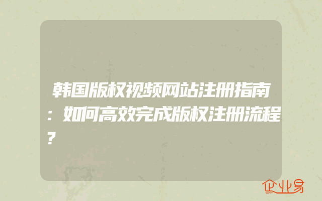 - 韩国版权视频网站注册指南:如何高效完成版权注册流程?