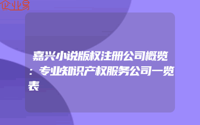 - 嘉兴小说版权注册公司概览:专业知识产权服务公司一览表
