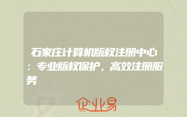 - 石家庄计算机版权注册中心:专业版权保护,高效注册服务