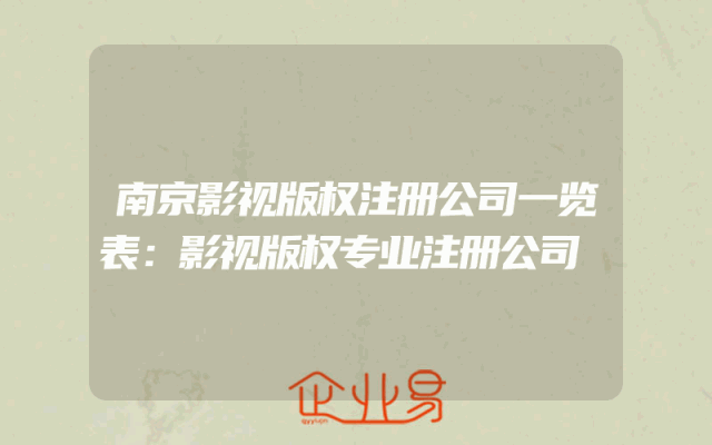 - 南京影视版权注册公司一览表:影视版权专业注册公司