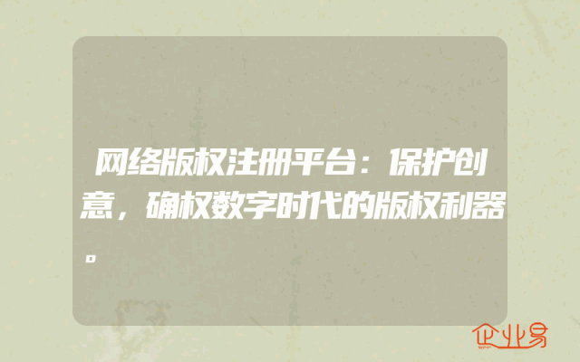 - 网络版权注册平台:保护创意,确权数字时代的版权利器。
