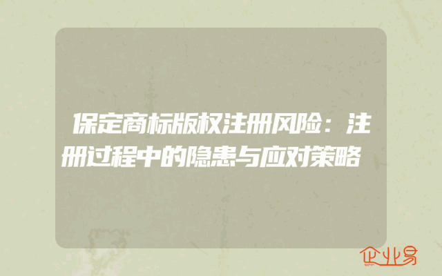 - 保定商标版权注册风险:注册过程中的隐患与应对策略