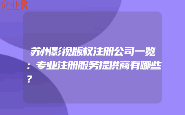 - 苏州影视版权注册公司一览:专业注册服务提供商有哪些?