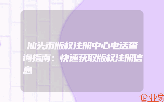 - 汕头市版权注册中心电话查询指南:快速获取版权注册信息