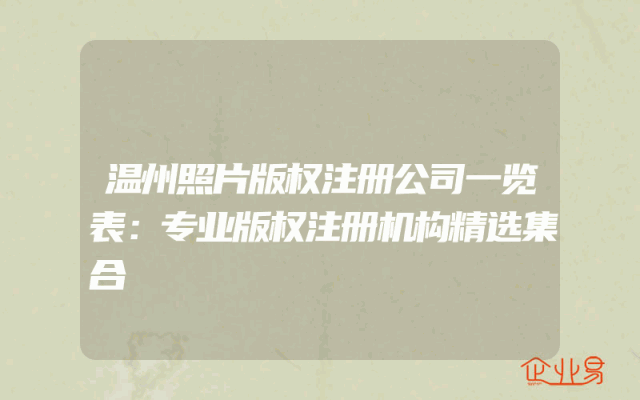 - 温州照片版权注册公司一览表:专业版权注册机构精选集合