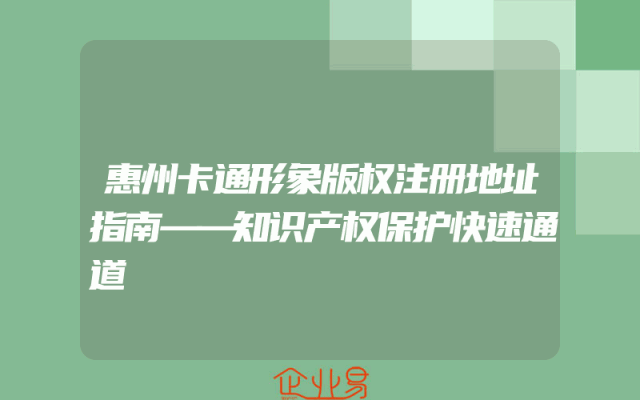 - 惠州卡通形象版权注册地址指南——知识产权保护快速通道