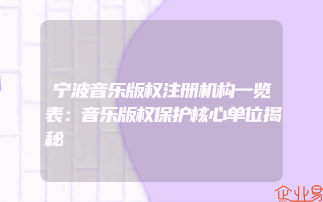 - 宁波音乐版权注册机构一览表:音乐版权保护核心单位揭秘