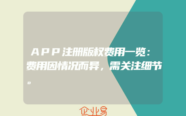 - APP注册版权费用一览:费用因情况而异,需关注细节。