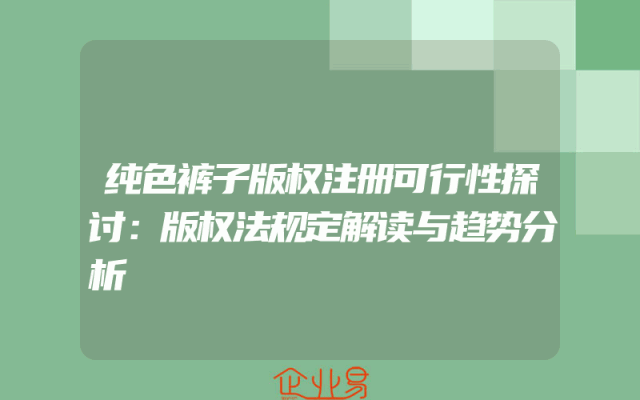 - 纯色裤子版权注册可行性探讨:版权法规定解读与趋势分析