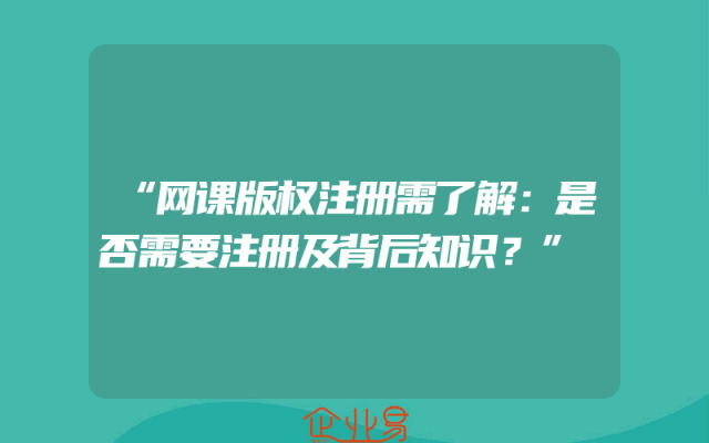 - “网课版权注册需了解:是否需要注册及背后知识?”