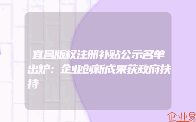 - 宜昌版权注册补贴公示名单出炉:企业创新成果获政府扶持