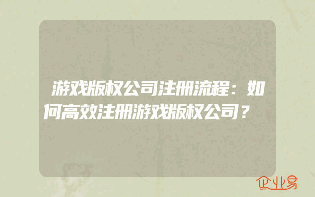 - 游戏版权公司注册流程:如何高效注册游戏版权公司?