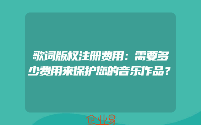 - 歌词版权注册费用详解:需要多少费用来保护您的音乐作品?一、歌词版权的重要性在现代社会,音乐作品的创作和传播越来越广泛,其中歌词作为音乐的重要组成部分,其版权保护尤为重要。注册版权是对音乐人劳动成果的尊重和保护,也是防止侵权行为发生的