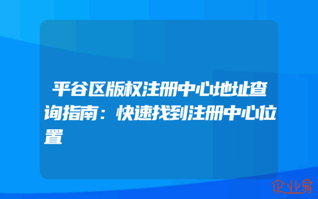- 平谷区版权注册中心地址查询指南:快速找到注册中心位置