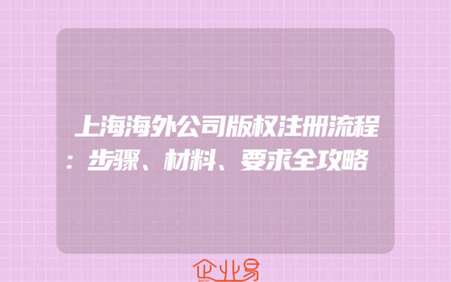 - 上海海外公司版权注册流程:步骤、材料、要求全攻略