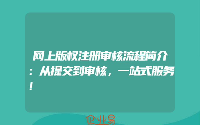 - 网上版权注册审核流程简介:从提交到审核,一站式服务!