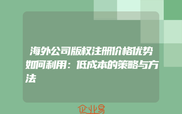 - 海外公司版权注册价格优势如何利用:低成本的策略与方法