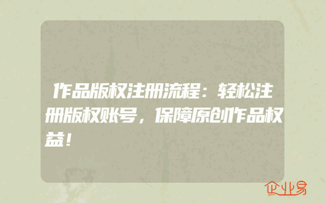 - 作品版权注册流程:轻松注册版权账号,保障原创作品权益!