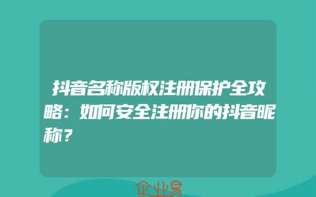- 抖音名称版权注册保护全攻略:如何安全注册你的抖音昵称?