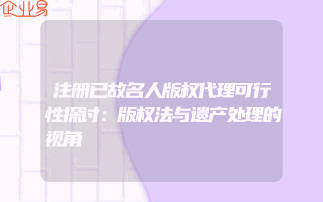 - 注册已故名人版权代理可行性探讨:版权法与遗产处理的视角