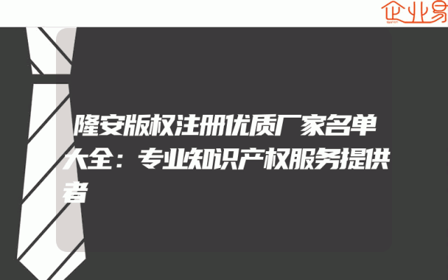 - 隆安版权注册优质厂家名单大全:专业知识产权服务提供者
