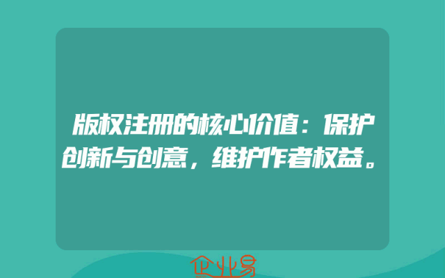 - 版权注册的核心价值:保护创新与创意,维护作者权益。