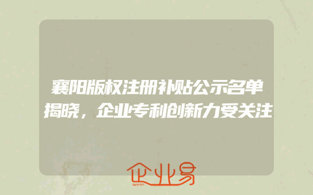 - 襄阳版权注册补贴公示名单揭晓,企业专利创新力受关注