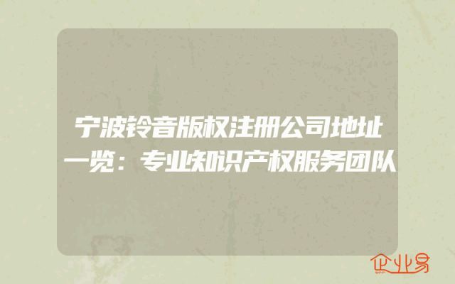 - 宁波铃音版权注册公司地址一览:专业知识产权服务团队