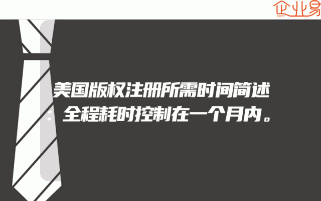 - 美国版权注册所需时间简述:全程耗时控制在一个月内。