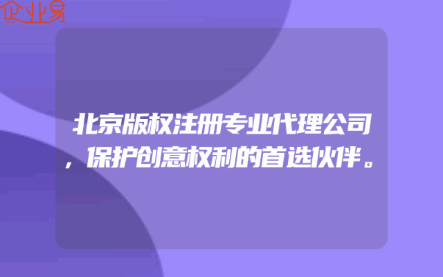 - 北京版权注册专业代理公司,保护创意权利的首选伙伴。