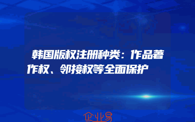 - 韩国版权注册种类:作品著作权、邻接权等全面保护