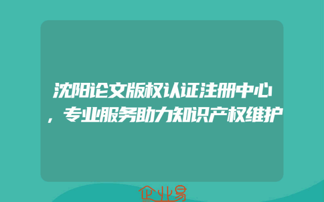 - 沈阳论文版权认证注册中心,专业服务助力知识产权维护