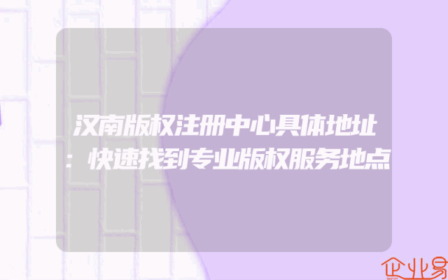 - 汉南版权注册中心具体地址详解:快速找到专业版权服务地点一、汉南版权注册中心概述汉南版权注册中心作为专业的版权服务机构,为广大创作者和企业提供了全方位的版权服务。中心致力于保护知识产权,促进文化创