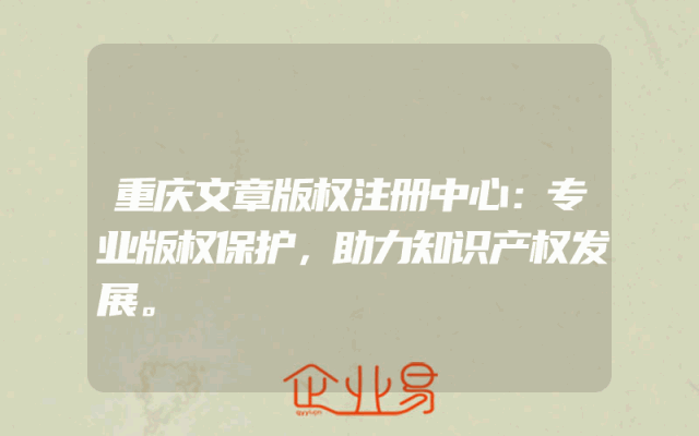 - 重庆文章版权注册中心:专业版权保护,助力知识产权发展。
