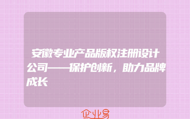 - 安徽专业产品版权注册设计公司——保护创新,助力品牌成长