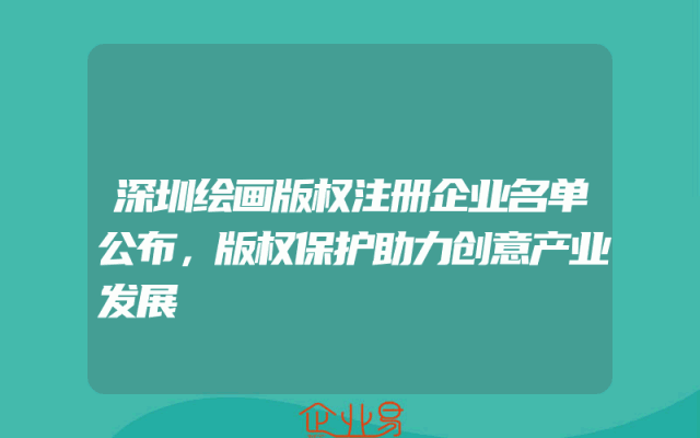- 深圳绘画版权注册企业名单公布,版权保护助力创意产业发展