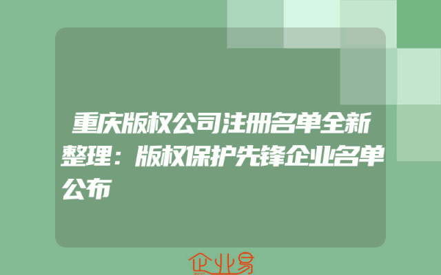 - 重庆版权公司注册名单全新整理:版权保护先锋企业名单公布