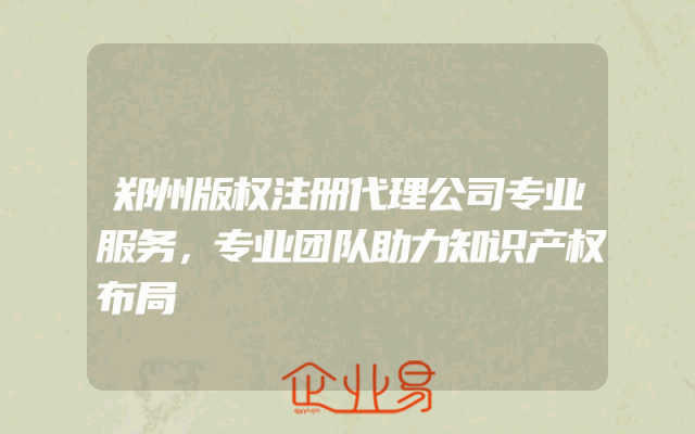 - 郑州版权注册代理公司专业服务,专业团队助力知识产权布局