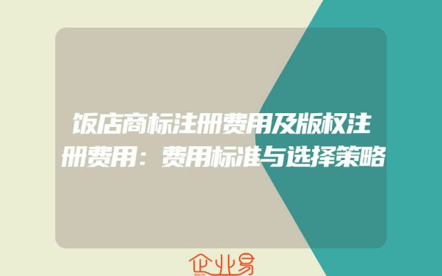 - 饭店商标注册费用及版权注册费用:费用标准与选择策略
