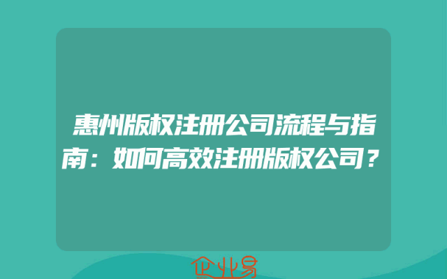 - 惠州版权注册公司流程与指南:如何高效注册版权公司?