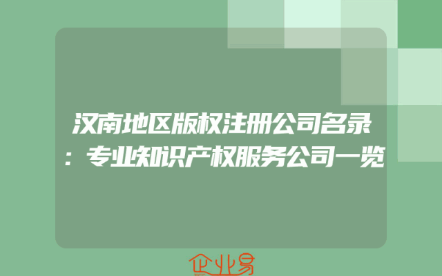 - 汉南地区版权注册公司名录:专业知识产权服务公司一览