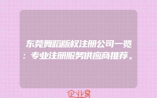 - 东莞舞蹈版权注册公司一览:专业注册服务供应商推荐。