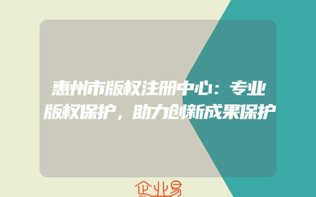- 惠州市版权注册中心:专业版权保护,助力创新成果保护