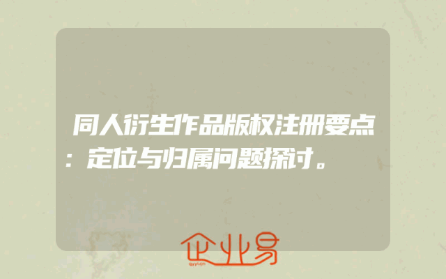 - 同人衍生作品版权注册要点:定位与归属问题探讨。