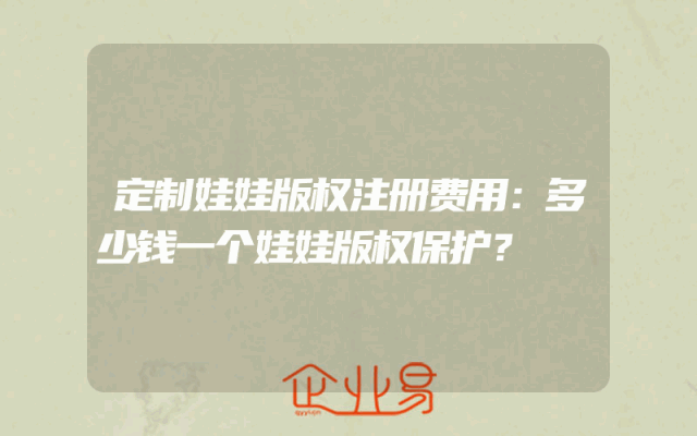 - 定制娃娃版权注册费用:多少钱一个娃娃版权保护?