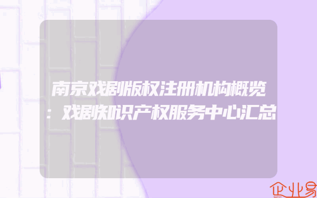 - 南京戏剧版权注册机构概览:戏剧知识产权服务中心汇总