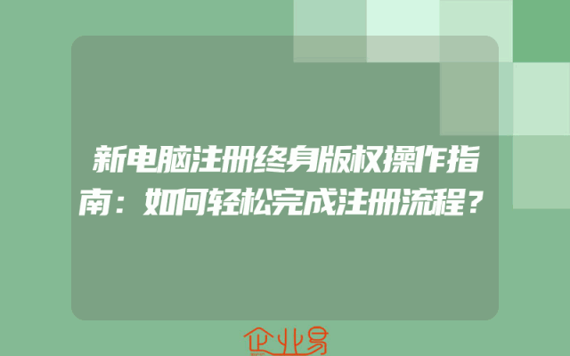 - 新电脑注册终身版权操作指南:如何轻松完成注册流程?