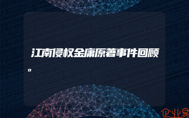 - 江南侵权金庸原著事件回顾一、事件背景近年来,关于金庸先生原著被侵权的事件屡见不鲜。最近的一次事件涉及到江南地区的某版权侵犯行为,引起了广大读者和社会各界的关注。这一事件不仅关乎金庸先生的知识产权,更是对文学界版权保护的严峻考验。二、事件经过